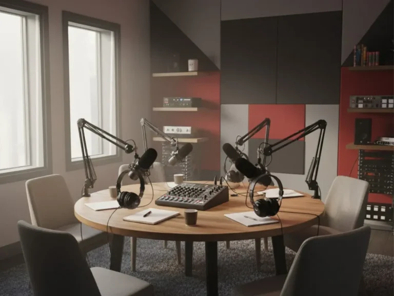 Our podcast studio is designed for creators who want clear audio, modern equipment, and a relaxed environment. Whether you’re recording your first episode or running a full podcast series, our team helps you every step—from recording to editing and publishing.